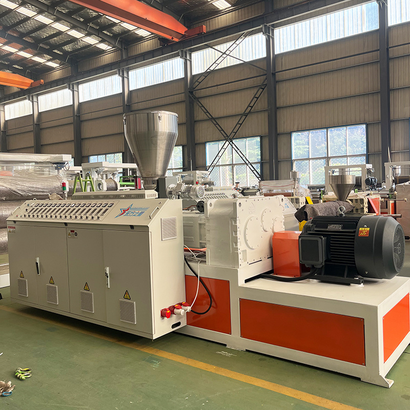 Extrudeuses coniques à double vis, équipées de diverses spécifications de moules et d'équipements auxiliaires fabriqués parQingdao Eaststar Plastic Machinery Co., Ltd.,peut transformer directement la poudre de PVC en produits en plastique tels que des tuyaux, des feuilles et des profilés.