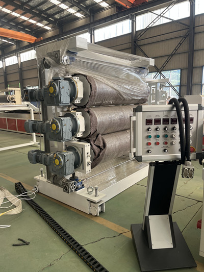 3. Calandrage (processus courant, adapté aux revêtements fins et de grande surface, épaisseur 0,2-1,5 mm)