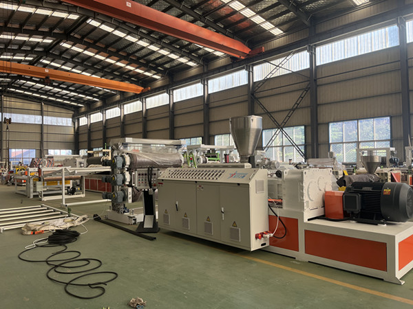 Principe : Le prémélange de PVC est introduit dans l'extrudeuse, chauffé et cisaillé par la vis, puis extrudé à travers une filière plate en feuille. La feuille est ensuite refroidie, durcie et découpée.