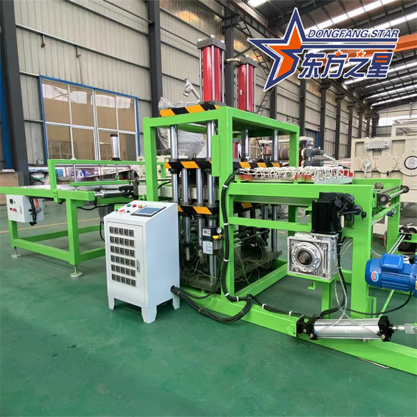 Chauffage de feuille de treillis de contrôle des racines → moulage par compression → poinçonnage → coupe des bords → inspection et emballage