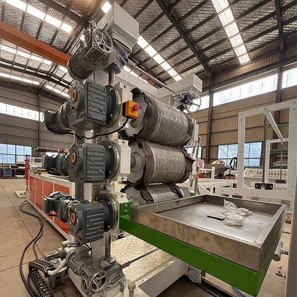 Le moule en feuille de TPU utilise une tête de matrice en T chromée à finition miroir. La conception du chemin d'écoulement est symétrique et lisse, sans points morts, garantissant une distribution uniforme de la matière fondue. L'écartement des lèvres de la matrice est réglable avec précision (avec une précision de 0,01 mm), s'adaptant à des épaisseurs de tôle de 0,1 à 5 mm. L'extrudeuse de feuilles TPU est équipée d'une unité de refroidissement et de mise en forme à trois rouleaux. La surface du rouleau est polie miroir et la température de l'eau de refroidissement est contrôlée par un système à température constante. Cela permet un refroidissement et une mise en forme rapides tout en garantissant une surface lisse et sans rayures. La planéité et la tolérance d'épaisseur de la feuille (à ± 0,03 mm près) sont contrôlées par la pression entre les rouleaux.